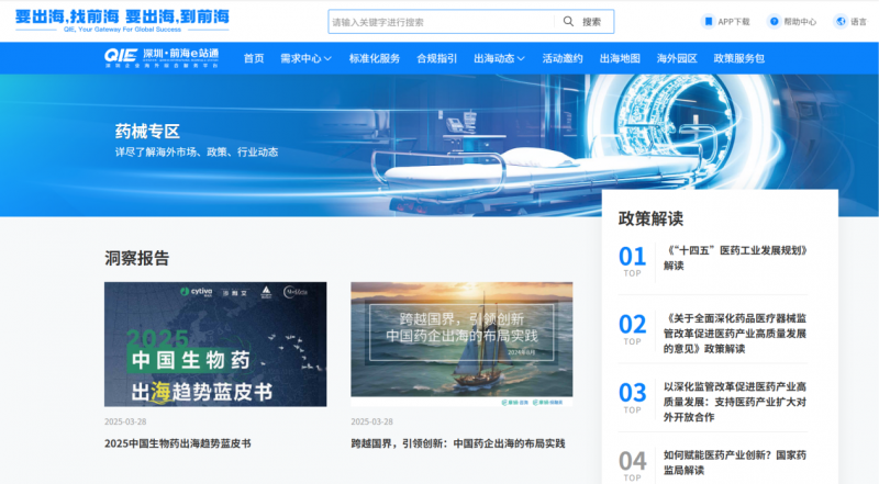 市药械办协同各区出海平台赋能药械产业,组成市区联合药械出海服务团队,在本次启动仪式现场集体亮相。前海出海e站通药械专区正式发布,将整合海外合规指引、跨境物流、金融保险等资源,为企业提供一站式出海服务;南山区全球服务中心秉承“政府引导、企业联动、平台服务”的理念,联动境内外企业与专业机构,全力打造“企业出海”“外资来华”“外企服务”三大板块;罗湖区构建“线下实体+线上平台”双轨服务体系,线下成立出海服务实体平台、线上打造“企业出海中心”版块,发布企业出海“航海图”,提供一站式出海服务;福田打造“签证+认证+公证”三证合一服务模式,涵盖产品、人才、资本、供应链等出海平台服务;龙华区产业出海联盟发布“黄金十六条”产业出海服务清单,构建政府、供应链、金融、合规管理等全方位服务体系。